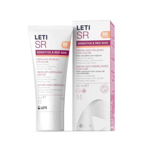 LetiSR Creme Anti-Vermelhidão com Cor com Corretor para Pele Sensível com Vermelhidão, cuida da pele, enquanto ajuda a reduzir a vermelhidão e a atenuar os capilares visíveis. O corretor verde cobre a vermelhidão facial e os pigmentos do creme unificam o tom de pele. Apresenta um fator de proteção solar médio (SPF 20). Não comedogénico.