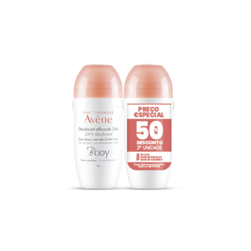AVENE BODY DUO DESODORIZANTE EFICÁCIA 24H 2 X 50 ML COM DESCONTO DE 50% NA 2ª EMBALAGEM