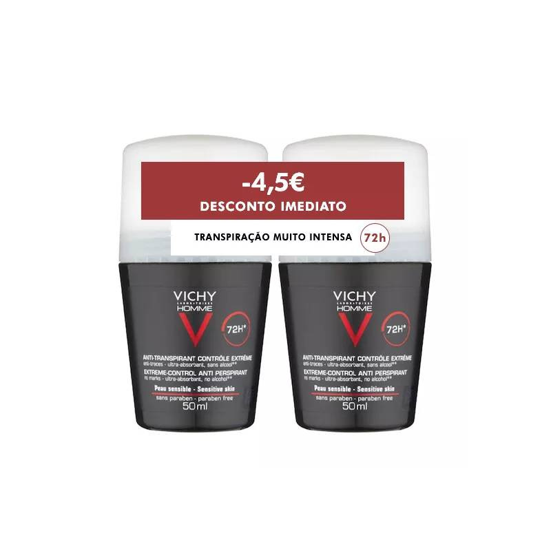 VICHY HOMME DUO DESODORIZANTE CONTROLO EXTREMO 72H 2 X 50 ML COM DESCONTO DE 4,5€