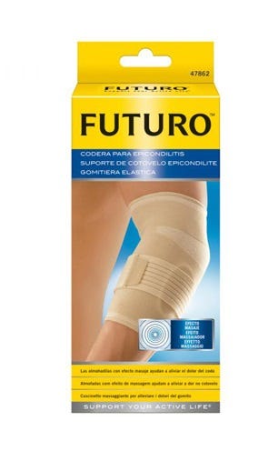 Futuro Suporte Cotovelo c/ Almofada p/ Epicondilite proporciona calor relaxante e compressão. O formato em manga fina acompanha a forma natural do braço e fica discreto sob a roupa. Feito de tecido com compressão de dupla elasticidade, suave e permeável ao ar, para um ajuste e conforto ideais. Fácil de colocar e retirar. Pode ser utilizado no cotovelo esquerdo e direito.