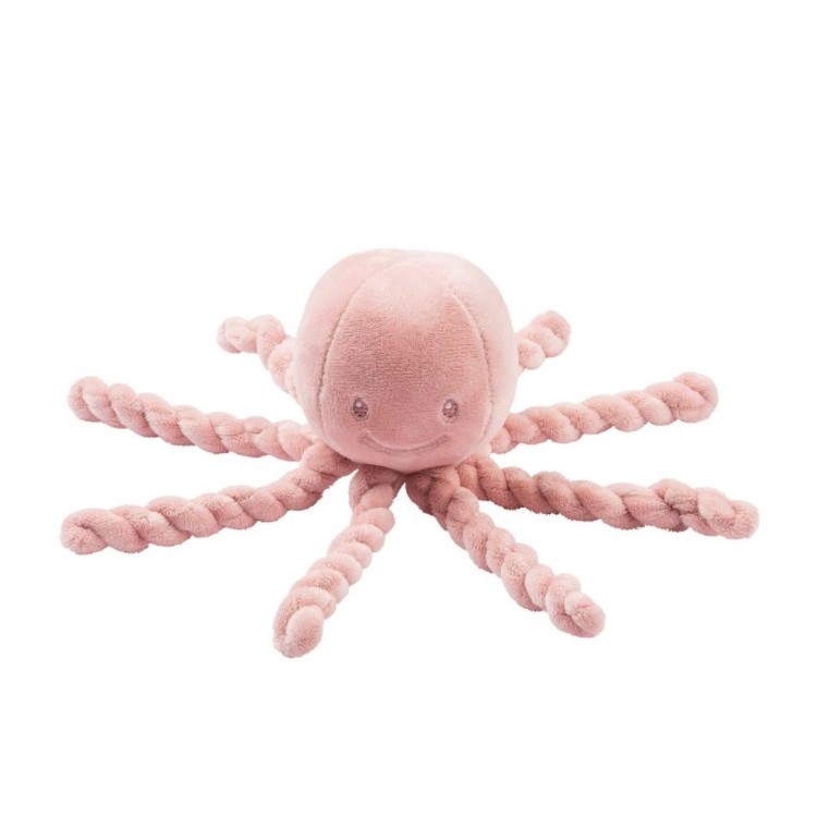 Nattou Lapidou Polvo é um brinquedo suave em formato peluche, adequado desde o nascimento, inclusive bebés prematuros.