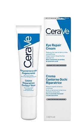 CeraVe Creme Reparador Contorno dos Olhos apresenta na sua composição 3 ceramidas essenciais que ajudam a reparar e restaurar a barreira protetora da pele. As ceramidas em conjunto com o ácido hialurónico reduzem o aspeto das olheiras e inchaço. Creme não oleoso de rápida absorção. Sem perfume. Não comedogénico. Testado oftalmologicamente.