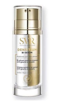 SVR Densitium Bi-Sérum Nutrição Intensa é ideal para atenuar a flacidez cutânea e as rugas instaladas. Apresenta uma fórmula única com componentes reestruturantes antienvelhecimento da pele que ajudam a reduzir a perda de densidade e volume. Dia após dia, a pele é redensificada e as maçãs do rosto levantadas. A pele fica mais suave e brilhante. Sem parabenos e silicones. Não comedogénico.