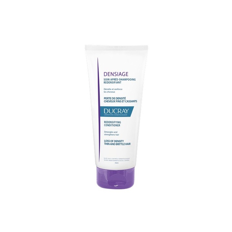 Ducray Densiage Cuidado Após Champô é um bálsamo condicionador redensificante, de uso diário, para cabelo fino e quebradiço. Ajuda a hidratar, suavizar e devolver a densidade ao cabelo.