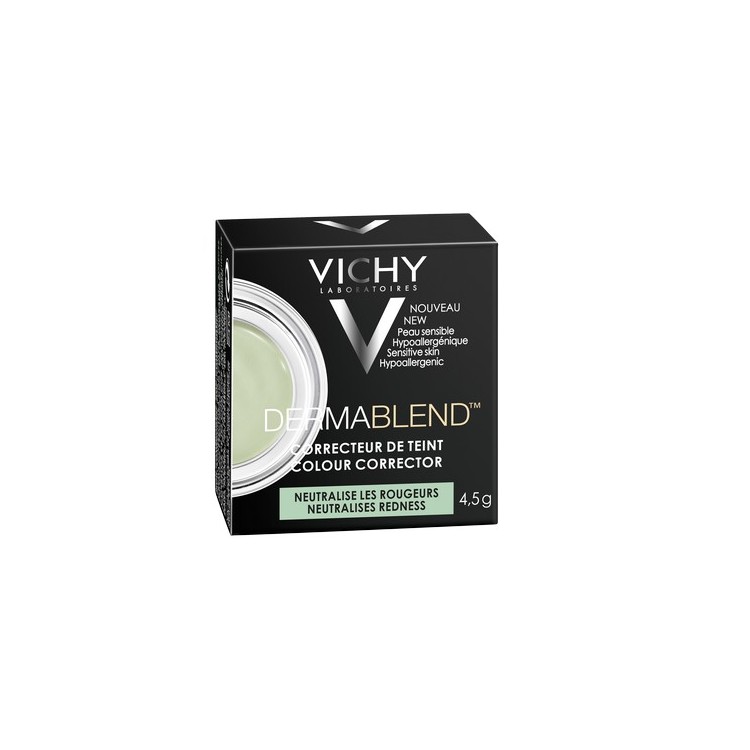 Vichy Dermablend Corretor Verde é um corretor compacto, que ajuda a neutralizar a vermelhidão, corrigir e uniformizar a tez. Fácil de fundir, proporciona uma hidratação suave. De cobertura elevada, anula a vermelhidão da pele para um efeito natural. De longa duração, mantém a pele uniforme até 24h. Resistente à água e ao suor. Não bloqueia os poros. Ideal para pele com vermelhidão, rosácea e marcas (acne, cicatrizes). De elevada tolerância, oftalmologicamente testado.Modo de utilização:Aplicar na pele do rosto, perfeitamente limpa e seca, após o cuidado hidratante e antes da base. Fundir suavemente e reaplicar para cobertura extra. Para melhores resultados, usar com a linhaVichy Dermablend.