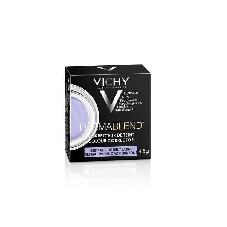 Vichy Dermablend Corretor Lilás é um corretor compacto, que ajuda a neutralizar os tons amarelados, corrigir e uniformizar a tez. Fácil de fundir, proporciona uma hidratação suave. De cobertura elevada, anula o tom amarelado da pele para um efeito natural. De longa duração, mantém a pele uniforme até 24h. Resistente à água e ao suor. Não bloqueia os poros. Ideal para todo o tipo de pele. De elevada tolerância, oftalmologicamente testado.Modo de utilização:Aplicar na pele do rosto, perfeitamente limpa e seca, após o cuidado hidratante e antes da base. Fundir suavemente e reaplicar para cobertura extra. Para melhores resultados, usar com a linhaVichy Dermablend.