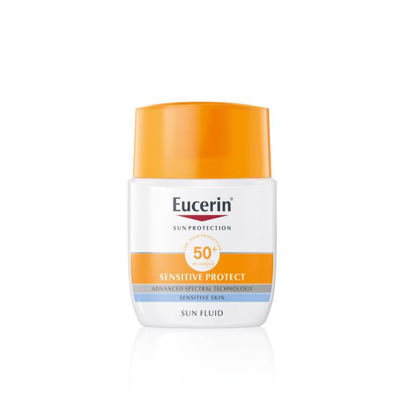 Eucerin Sunface Sensitive Creme FPS 50+ é um protetor solar de rosto fluido e matificante, indicado para pele mista e oleosa. A sua fórmula contêm o sistema Advanced Spectral Technology, com filtros UVA/UVB; licochalcone A, com ação antioxidante; e ácido glicirretínico que auxilia o mecanismo de reparação de ADN da pele. Textura leve e não gordurosa. Sem perfume. Resistente à água. Adequado a pele sensível e após tratamentos de peeling e laser. Como utilizar: aplicar no rosto antes de exposição solar. Repetir a aplicação sempre que necessário.