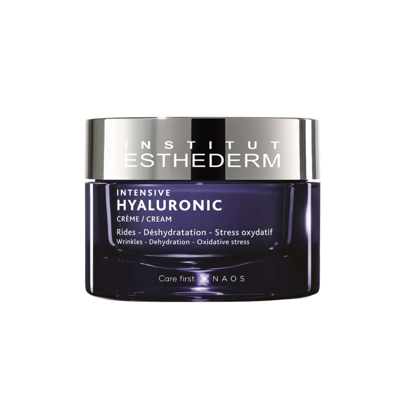 Esthederm Intensive Hyaluronic Creme é um cuidado hidratante e antirrugas intensivo, indicado para todos os tipo de pele com rugas, rídulas e desidratação intensa. Constituído por um complexo patenteado de três formas de ácido hialurónico diferentes capaz de penetrar nas camadas mais profundas da epiderme para redensificar os tecidos, preenchendo-os com água. Contém a enzima Anti-Hialuronidase que evita a degradação do próprio ácido hialurónico e protege a pele do stress ambiental graças à tecnologia patenteada Global Cellular Protection. Textura refrescante, rica, suave, aveludada, com efeito matificante, sem efeito oleoso, com fragrância. Como usar: aplicar de manhã e à noite no rosto, pescoço e decote. Para um resultado ótimo, usar como um programa de dois meses. Ideal após procedimentos estéticos.