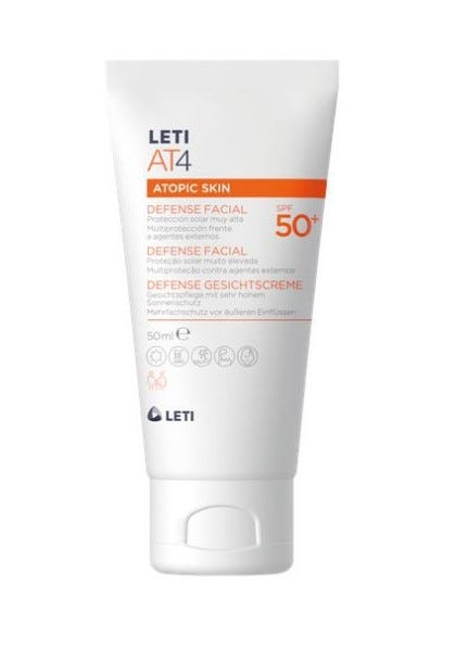 LetiAT4 Defense Creme Facial SPF 50+ forma uma barreira multiprotetora contra agentes externos como o sol, a poluição e o cloro. Indicado para crianças e adultos com pele atópica, seca e sensível.