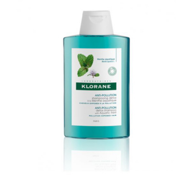 Champô com menta aquática indicado para cabelos expostos à poluição.