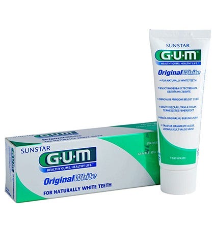 Gum Original White Pasta Dentífrica tem uma fórmula com partículas de sílica micronizada, que permitem que as manchas superficiais sejam separadas das zonas irregulares do esmalte e fiquem livres para serem dissolvidas pelo agente antimanchas.