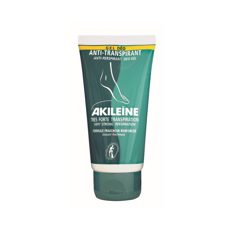 O Gel Anti-Transpirante Akileïne® regula rapidamente a transpiração excessiva sem a interromper e evita a maceração. A sua fórmula desodoriza o pé e impede a formação de odores desagradáveis. Efeito refrescante a partir da primeira aplicação.Modo de aplicação:Aplicar 2 vezes por dia, durante 2 semanas sem massajar. Espaçar as aplicações após a segunda semana de utilização.