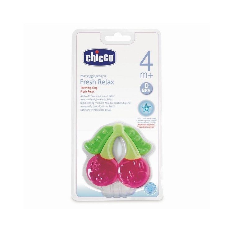 O Chicco Anel de Dentição - Fresco Relax foi estudado para estimular e refrescar as gengivas do seu bebé, durante a delicada fase da dentição. A parte em plástico macio contém água esterilizada que mantém o anel fresco durante muito tempo, aliviado as dores e refrescando a boca e as gengivas sensíveis. A sua superfície com relevos torna-o um objeto agradável para o bebé morder. A pega em borracha rígida permite que o bebé segure bem o anel de dentição e proporciona-lhe outra superfície macia para morder. Limpeza: lave este produto com água quente e sabão e enxagúe-o muito bem. Para maior higiene, esterilize-o com líquido esterilizante, conforme as modalidades recomendadas pelo produtor. Não o ferva nem o esterilize a vapor. 0%BPA.Refrigerar somente num frigorifico doméstico, não colocar no congelador.