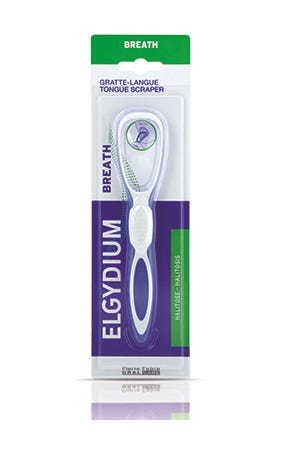 Elgydium Breath Raspador de Língua completa a ação das pastilhas ou spray para o mau hálito. Contribui para a eliminação do filme bacteriano da língua, responsável pelo mau hálito. Utilização prática dada a sua ergonomia adaptada à língua.