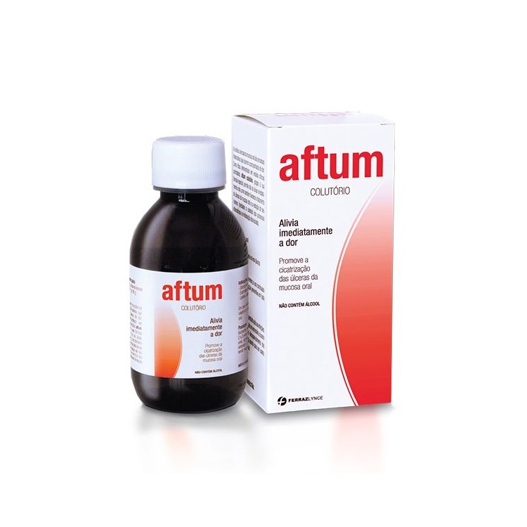 Aftum Colutório alivia imediatamente a dor e favorece o tratamento das úlceras e lesões orais menores.