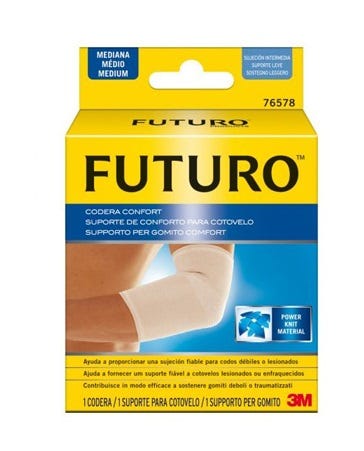 Futuro Suporte Elástico Comfort Lift Cotovelo possui um formato em manga fina que acompanha a forma natural do braço e fica discreto sob a roupa. Concebido para proporcionar um conforto durante todo o dia com materiais suaves, leves e permeáveis ao ar. Fácil de colocar e de retirar. Pode ser utilizado no cotovelo esquerdo e direito.