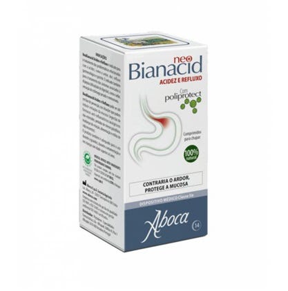 NeoBianacid Acidez e Refluxo forma na mucosa uma película com efeito de barreira, que a protege do contacto com os sucos gástricos e das substâncias irritantes. Pode ser utilizado como preventivo nas situações que podem induzir irritações da mucosa (ingestão de medicamentos anti-inflamatórios ou analgésicos não esteróides, períodos de stress, mudanças de estação, alimentação e estilos de vida incorretos). Biológico e de gosto agradável. Sem glúten.