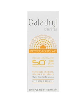 Caladryl Derma Sun Creme SPF 50+ é um creme hidratante de rosto para proteção solar, com fator de proteção muito elevado (SPF 50+). Contém filtros UVA/UVB de largo espetro e complexo Triple Moist que promovem uma elevada proteção contra os raios solares e hidratação intensa da pele, permitindo uma pele suave e confortável durante a exposição solar. Indicado para pele sensível. Sem perfume. Testado dermatologicamente.