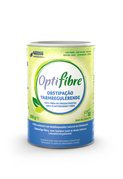 Optifibre Pó composto por uma fibra 100% solúvel de goma guar parcialmente hidrolisada em pó, que ajuda no aporte diário de fibra recomendado. Sabor neutro.