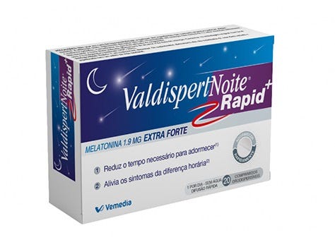 Suplemento alimentar contendo melatonina que contribui para reduzir o tempo necessário para adormecer e a sensação de jet-lag.