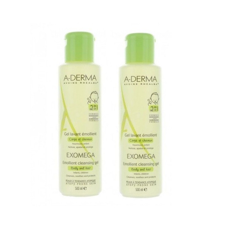A-Derma Exomega Control Gel Corpo/Cabelo Duo é um pack composto por duas embalagens de 500ml.
