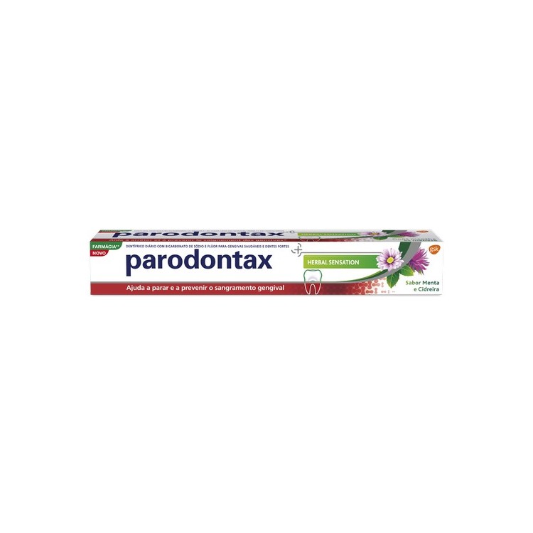 Parodontax Herbal Sensation. Pasta dentífrica de uso diário com flúor, clinicamente comprovada que ajuda a parar e a prevenir o sangramento gengival. Tem uma combinação de aromas de plantas com sabor herbal para uma sensação de limpeza e frescura.