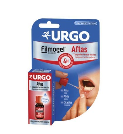Urgo Aftas Filmogel cria uma película protetora fina e flexível, protegendo de agressões externas (alimentos, próteses, etc). Alivia a dor de forma rápida favorecendo a cicatrização das aftas e pequenas feridas. A película é resistente à água e alimentos durante 4 horas.