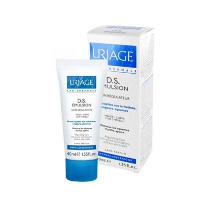 Uriage D.S. Emulsão é um cuidado regulador que reestrutura e acalma a sensação de desconforto e repuxamento e hidrata a pele. Formulado com piroctona olamina, um reconhecido ativo purificante com atividade anti-fungíca, esta emulsão reduz a descamação e melhora o aspeto da pele. Contém ainda glicerina, o agente protetor sobreengordurante que repõe parcialmente a gordura natural da pele retirada pela lavagem e manteiga de karité, que confere nutrição intensa. De textura ligeira, não oleosa, pode ser utilizado em todas as idades. Sem perfume nem parabenos. Hipoalergénico. Não comedogénico.