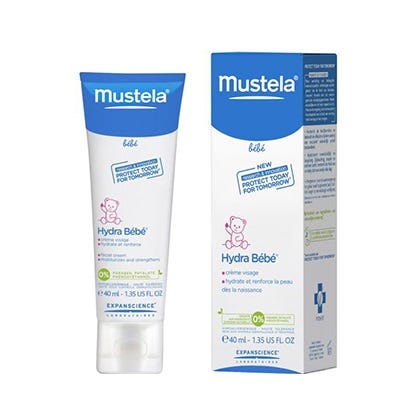 Hydra Bebé Creme Rosto Mustela hidrata e reforça a barreira cutânea deixando a pele do rosto sedosa, flexível e suave. Preserva a riqueza celular da pele do rosto do recém-nascido, bebé e criança, graças à Perséose de Abacate.