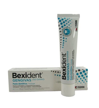 Bexident Gengivas Uso Diário Pasta Dentífrica mantém as gengivas saudáveis devido à sua ação antissética, rápida e prolongada, graças à libertação progressiva de Triclosan. Repara e tonifica devido à sua formulação com dexpantenol e alantoína. Tem ação anticárie, devido ao seu conteúdo em fluoreto de sódio (0,22%). Indicado para o controlo da gengivite e das cáries e para a manutenção periodontal e de implantes. Para uso diário em utilização de longa duração.