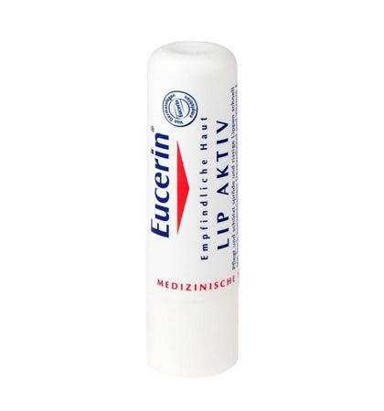 Eucerin Pele Sensível Lip Active Stick hidrata e protege os lábios dos fatores externos (vento, sol, frio, chuva). Com fator de proteção solar médio (SPF 15). Pode ser usado para o cuidado dos lábios com cieiro. Sem parabenos.