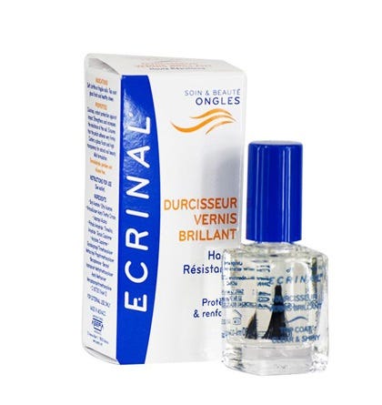 Ecrinal Unhas Verniz Brilh Endurecedor é um cuidado fortalecedor que dá brilho e resistência às unhas frágeis. Previne que a unha se parta. Pode ser usado como base ou top coat" (verniz de acabamento).".