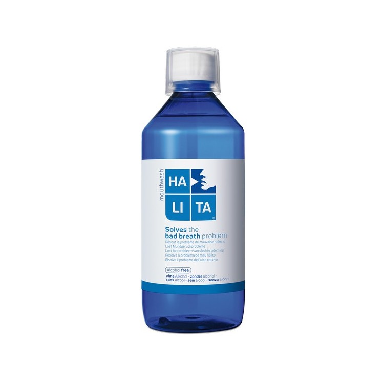 Hálita Colutório atua de forma rápida e eficaz na eliminação das bactérias. Antissético de ação prolongada para um melhor controlo bacteriano e uma diminuição da produção de mau hálito. HALITA® Colutório neutraliza as substâncias responsáveis pelo mau hálito; Ajuda a combater a placa dentária e seus efeitos sobre os dentes e gengivas; é um produto de higiene oral diária.