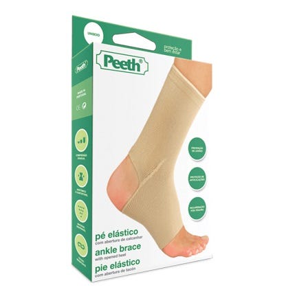 Peeth Pé Elástico permite uma compressão gradual de forma anatómica, que confere proteção e conforto instantâneos. É indicado para situações pós intervenções cirúrgicas, tratamento de cicatrizes, distensões musculares e lesões nos tendões. É feito com material suave, livre de cheiros e respirável que o torna ideal para durante a prática de desporto.