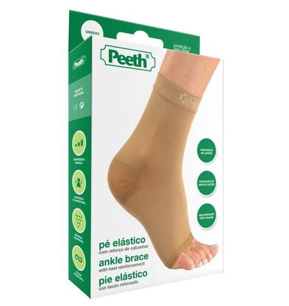 Peeth Pé Elástico permite uma compressão gradual de forma anatómica, que confere proteção e conforto instantâneos. É indicado para situações pós intervenções cirúrgicas, tratamento de cicatrizes, distensões musculares e lesões nos tendões. É feito com material suave, livre de cheiros e respirável que o torna ideal para durante a prática de desporto.