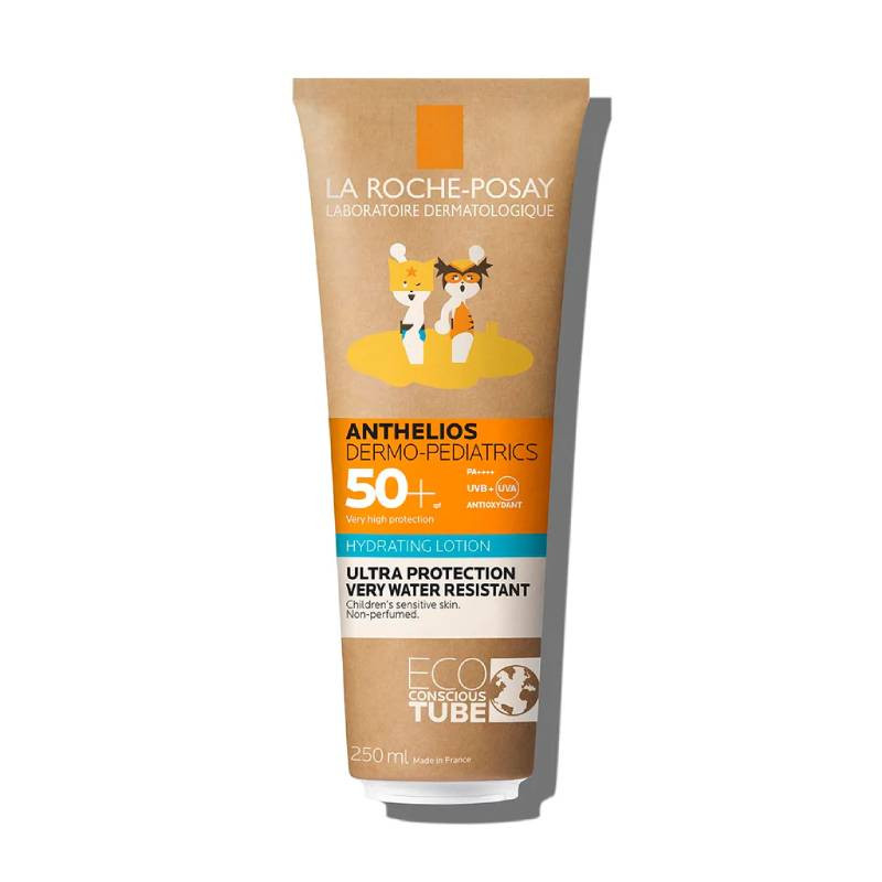 La Roche-Posay Anthelios Dermo-Pediatrics FPS 50+ oferece uma proteção muito elevada de amplo espetro (UVA, UVB) para as crianças. Não deixa marcas brancas. Muito resistente à água. Adaptado à pele sensível das crianças. Proteção muito alta. Muito resistente à água.  Como utilizar: Aplicar o protetor solar antes da exposição solar. Reaplicar a cada 2 horas, frequentemente e generosamente para manter a proteção, especialmente depois de nadar, transpirar ou secar com a toalha. Mantenha as crianças bem cobertas, com um chapéu, uma t-shirt e óculos de sol. Evitar o contorno dos olhos. Em caso de contacto com os olhos, passe-os por água em abundância.