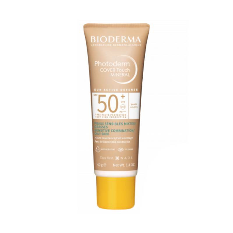 Bioderma Photoderm Cover Touch FPS50+ é um cuidado solar mineral com acabamento dourado e proteção muito elevada, cobertura não colante da pele mista a oleosa e/ou com imperfeições. Melhora a qualidade do sebo e limita o aparecimento de novas imperfeições graças à patente Fluidactiv™ combinada com ácidos glicólico e salicílico. Respeita a pele mista e oleosa, proporcionando 8h de controlo da oleosidade e deixa a pele respirar. Sem perfume. Tolerância cutânea e ocular. Resistente à água, calor, alta humidade e transferência.