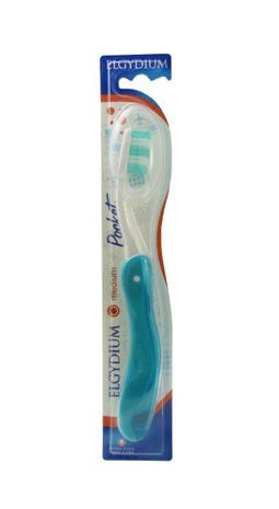 Elgydium Escova de Dentes Pocket Média é uma escova de dentes com cabo dobrável medindo 10 cm depois de fechada. Graças ao seu tamanho, oferece condições de higiene dentária em todas as ocasiões, sem ocupar espaço (férias, trabalho, desporto). Disponível em 2 cores: azul e verde. Dureza: média.