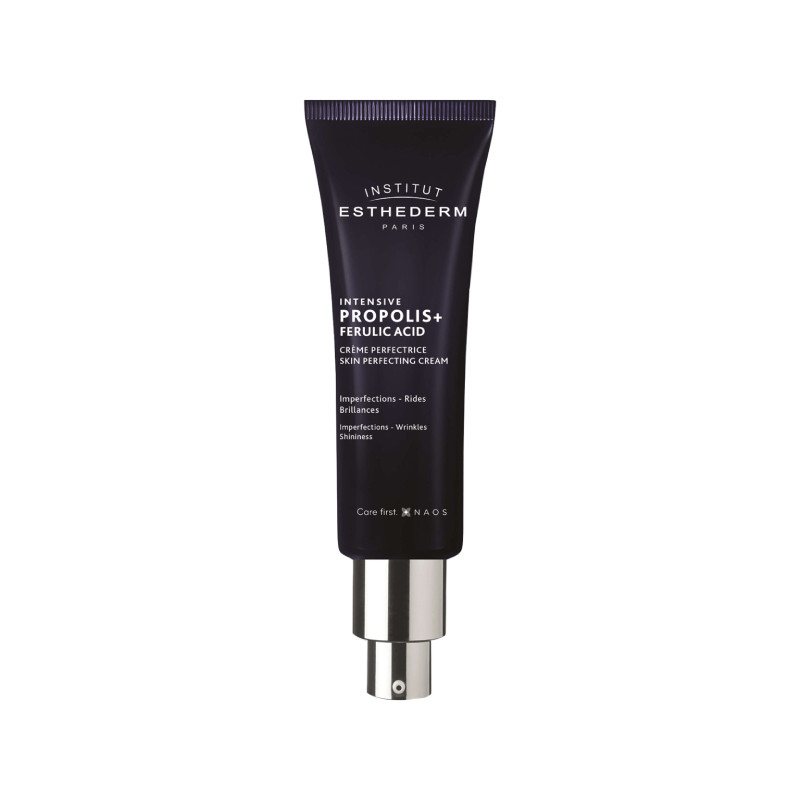 Esthederm Intensive Propolis+ Ferulic Acid Creme é um cuidado antirrugas diário, indicado para pele com imperfeições, excesso de sebo, e tendência ao acne tardio. A fórmula contém Ácido Ferúlico, com ação antioxidante que ajuda a preservar a juventude da pele; Peptídeo Biomimético, suaviza visivelmente as rídulas e rugas, reduz as imperfeições e matifica a pele. Alisa visivelmente as rugas presentes. Textura leve e não oleosa, com fragrância. Como usar: aplicar de manhã e à noite no rosto e pescoço. Para um resultado ótimo, usar como um programa de dois meses.