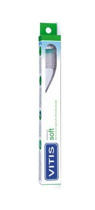 Vitis Escova de dentes é uma escova de dentes para utilização diária, com uma cabeça em forma de diamante que permite alcançar as zonas de mais difícil acesso da cavidade oral. O pescoço da escova é flexível, de forma a poder ser dobrado até adquirir a posição mais adequada à boca, melhorando assim a acessibilidade durante a escovagem. O cabo é anatómico e tem estrias antideslizamento para facilitar a utilização e o conforto durante a escovagem. Além disso, a cabeça tem uma tampa de proteção que mantém os filamentos agrupados e em condições ideais de higiene.