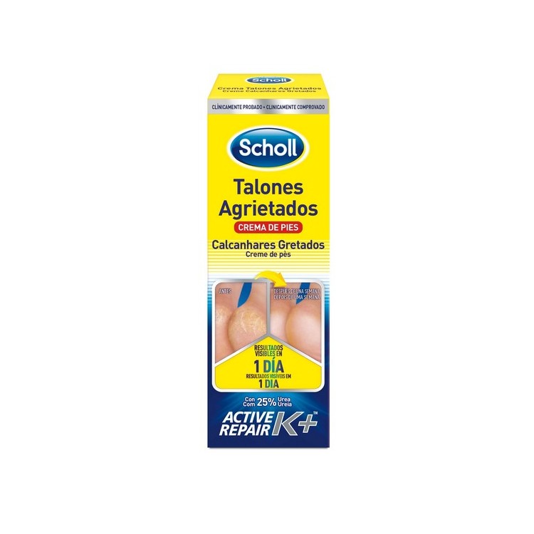 Os calcanhares gretados podem ser identificados quando há acumulação de pele seca nos contornos dos mesmos. Os calcanhares apresentam um aspeto descolorado, com ligeiras fissuras brancas ou gretas verticais, dependendo da severidade do problema. O Creme Calcanhares Gretados Active Repair K+ de Scholl contém um ingrediente que conserva as suas propriedades estruturais e biológicas. Ajuda a reativar o processo natural de reparação da pele mediante a estimulação da regeneração celular.