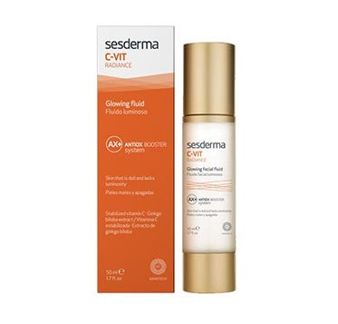 Sesderma C-VIT Radiance Fluido Luminoso é especialmente indicado para complementar a ação de despigmentantes. Ajuda a uniformizar o tom da pele, conseguindo um aspeto mais claro e luminoso. Favorece a síntese de colágenio, atenuando as rugas e linhas de expressão e melhorando a firmeza e a elasticidade da pele. O extrato de laranja doce promove uma esfoliação suave, removendo as células mortas e estimulando a renovação celular. Os pigmentos de laranja proporcionam à pele brilho e reflexos, dando-lhe um aspeto mais saudável e uma maior luminosidade. Com uma textura suave e de rápida absorção, deixa uma agradável sensação de frescura na pele após a aplicação. Indicado para todos os tipos de pele.