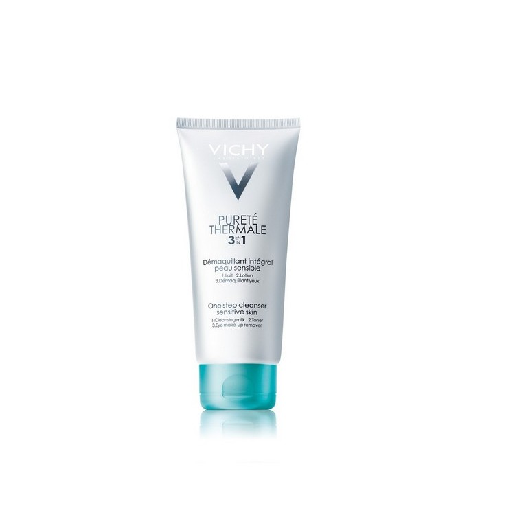 Pureté Thermale Desmaquilhante Integral 3 em 1 é um creme desmaquilhante de rosto e olhos, para todos os tipos de pele, especialmente formulado para pele sensível. Este cuidado possui uma ação 3 em 1, funciona como um leite de limpeza, como loção tónica e um desmaquilhante para olhos. Os seus constituintes ativos, limpam e desmaquilham, eficaz e suavemente a pele sem a irritar. A sua textura fresca não gordurosa, suaviza e fortalece a pele, deixando-a tonificada. Modo de aplicação:Aplicar de manhã e à noite com a ajuda de um disco de algodão. Este cuidado não necessita de enxaguamento.