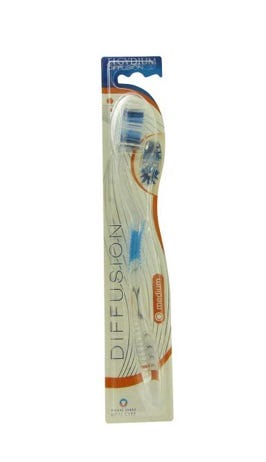 Elgydium Diffusion Escova de Dentes Média apresenta uma configuração única de cerdas e cabo ergonómico. Contém uma tampa que protege a cabeça da escova. Disponível em 4 cores (azul, vermelho, verde e roxo). Dureza: média.