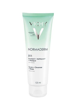 Vichy Normaderm Gel Esfoliante Creme Máscara 3 em 1 é adequado para a pele sensível e com imperfeições. Combina ingredientes peeling, um agente calmante com 25% de argila, numa textura cremosa. Ajuda a desobstruir os poros e a limpar a pele em profundidade, enquanto simultaneamente hidrata e devolve à pele o seu brilho natural.