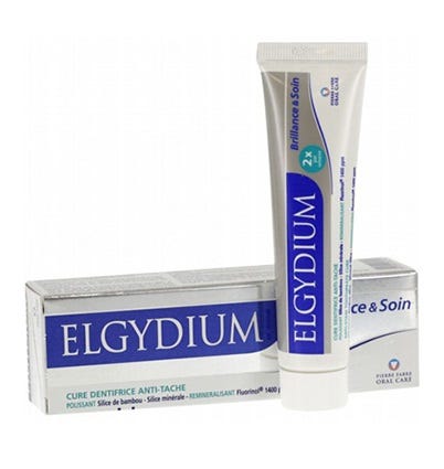 Elgydium Brilho & Cuidado Pasta Dentífrica possui uma ação de polimento à superfície, sem efeito agressivo, que remove manchas residuais (café, chá, nicotina, vinho tinto). Graças à presença de flúor na sua composição, fortalece a remineralização. A superfície dos dentes fica mais suave e brilhante. Sabor a menta.