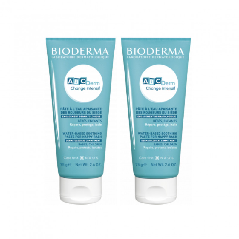 Bioderma ABCDerm Change Intensif Duo é um pack composto por duas embalagens de 75g. Bioderma ABCDerm Change Intensif é um creme reparador, indicado no tratamento e prevenção da dermatite da fralda. Fórmula: - D-pantenol com propriedades calmantes, reforça a barreira cutânea acelerando a reparação epidérmica;
