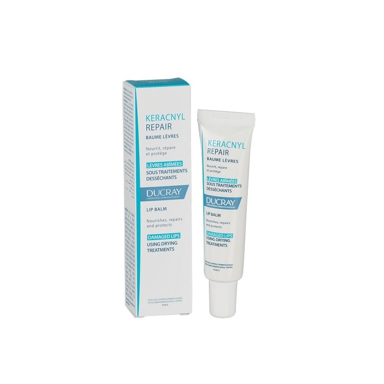 Keracnyl Repair Bálsamo Labial repara e protege os lábios da secura induzida por um tratamento medicamentoso antiacneico oral.