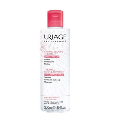 Uriage Água Termal Micelar - Pele Sensível é uma água micelar desmaquilhante e calmante, que limpa a pele em suavidade, com o máximo conforto. Formulada com tensioativos suaves, não iónicos, permite remover suavemente a maquilhagem e impurezas, sem agredir a pele. Enriquecida com água termal da Uriage, que pelas suas propriedades calmantes, suavizantes, anti-inflamatórias e hidratantes, ajuda manter a pele fresca, macia e luminosa, e contém extrato de Alperce, que promove o conforto cutâneo. Hipoalergénico. Testado oftalmologicamente.