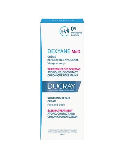 Dexyane MeD Creme Calmante Reparador restaura a barreira cutânea alterada. Corrige a secura e acalma a comichão. Diminui a intensidade da vermelhidão e irritação. Sem cortisona e perfume. Testado dermatologicamente.